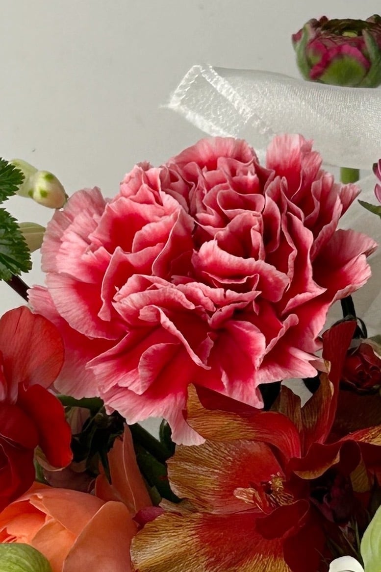 カーネションの色を二種類、レッド(落ち着いた雰囲気)/ピンク(明るい雰囲気)からお選び頂けます。